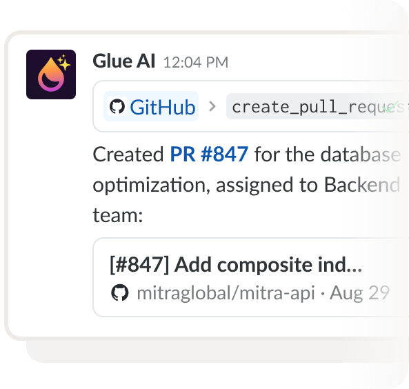 Glue helps you break free of the noise and get more done with outcome-oriented threads, a customizable AI agent, and MCP-enabled tool calls.